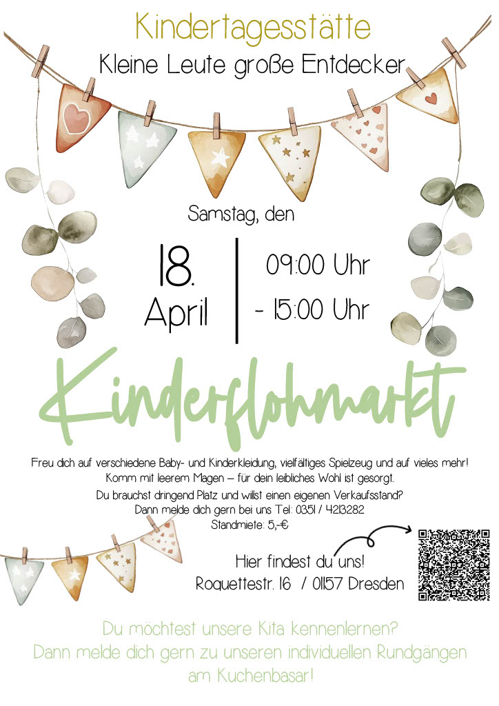 Wir laden Sie herzlich zu unserem Kinderflohmarkt ein. Alle Daten entnehmen sie bitte dem Flyer.